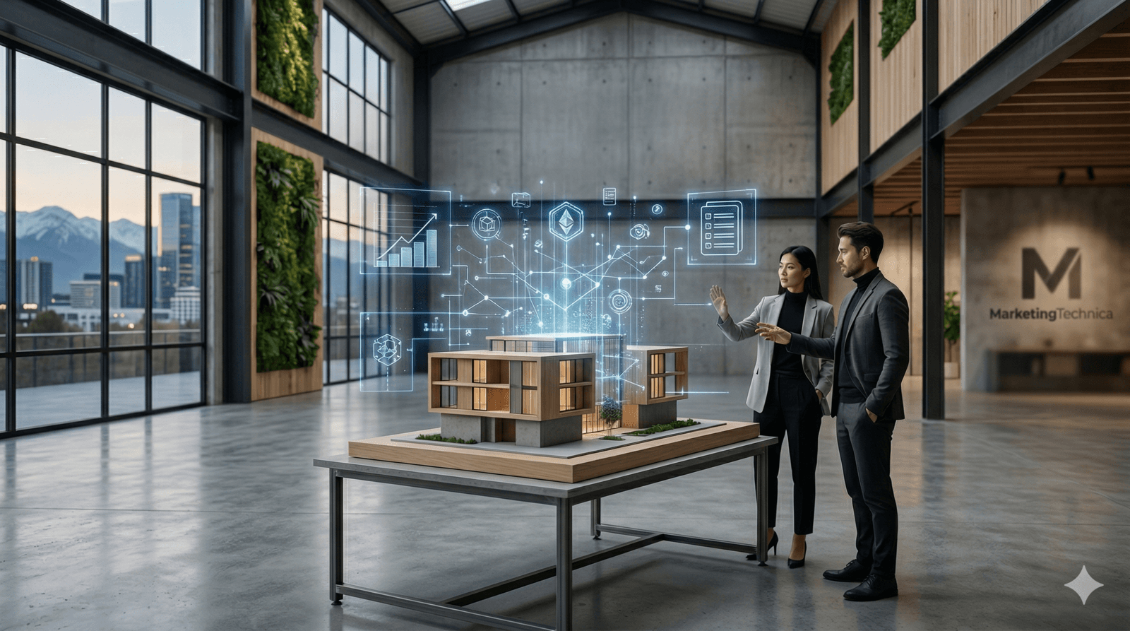Since investors may never visit the physical site, the Digital Twin is your primary sales tool. Leverage Modern Industrial aesthetics—raw concrete, exposed steel, and integrated greenery—in high-fidelity 3D renderings. Use AR (Augmented Reality) to allow potential token holders to “walk through” the space from their mobile devices. Aesthetic trust is the new currency.